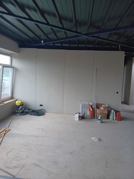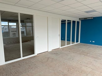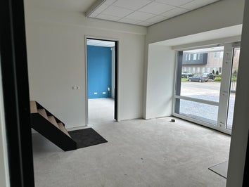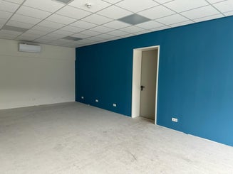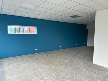 Hier enkele foto's van een bedrijfspand in Heerhugowaard. Na ruim 800m2 Scan behang te hebben aangebracht, hebben wij de wanden in een witte en een blauwe kleur geschilderd. Ook zijn de deuren en kozijnen gegrond en afgelakt in een witte kleur.